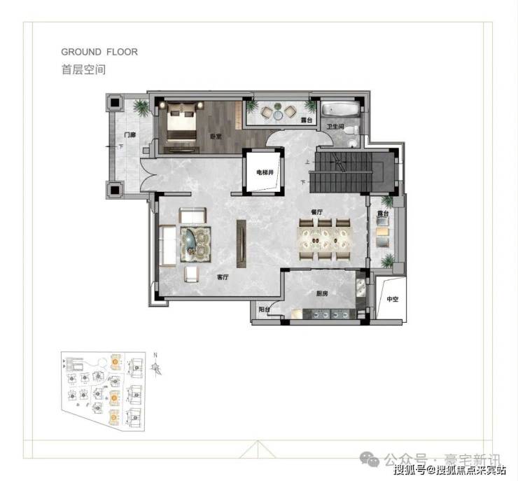 建面约361㎡、赠送面积215㎡、两厅六房设计