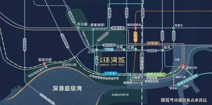 金地环湾城地处福田CBD与红树林生态区交汇处,毗邻香蜜湖新金融中心和河套深港科技创新合作区,南眺深圳湾海景及红树林湿地。