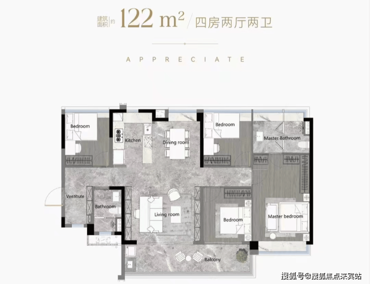 户型鉴赏(103-188平全南向四房,得房率高达126%)