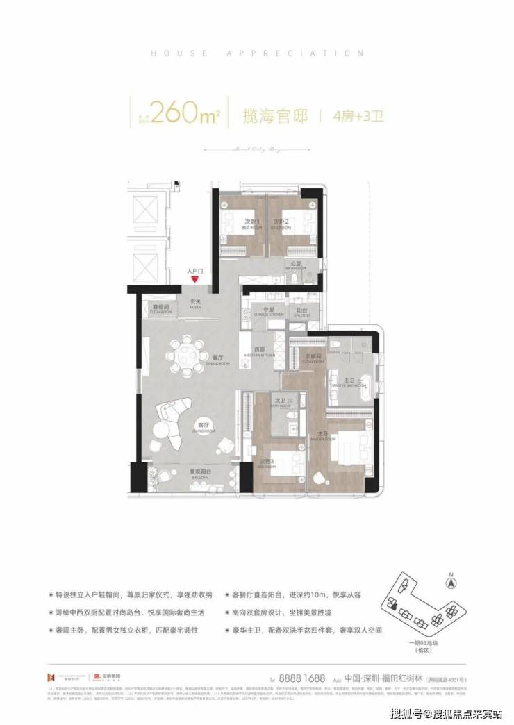 建面约260㎡揽海官邸 4房+3卫(T11-03低区)