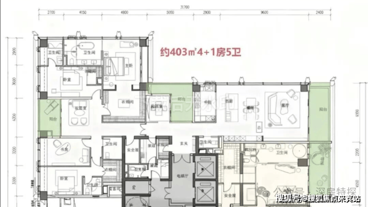 · 370-375㎡户型: 4+1房五卫设计,配备家庭厅和家政套间,适合有多样化生活需求的高净值家庭。