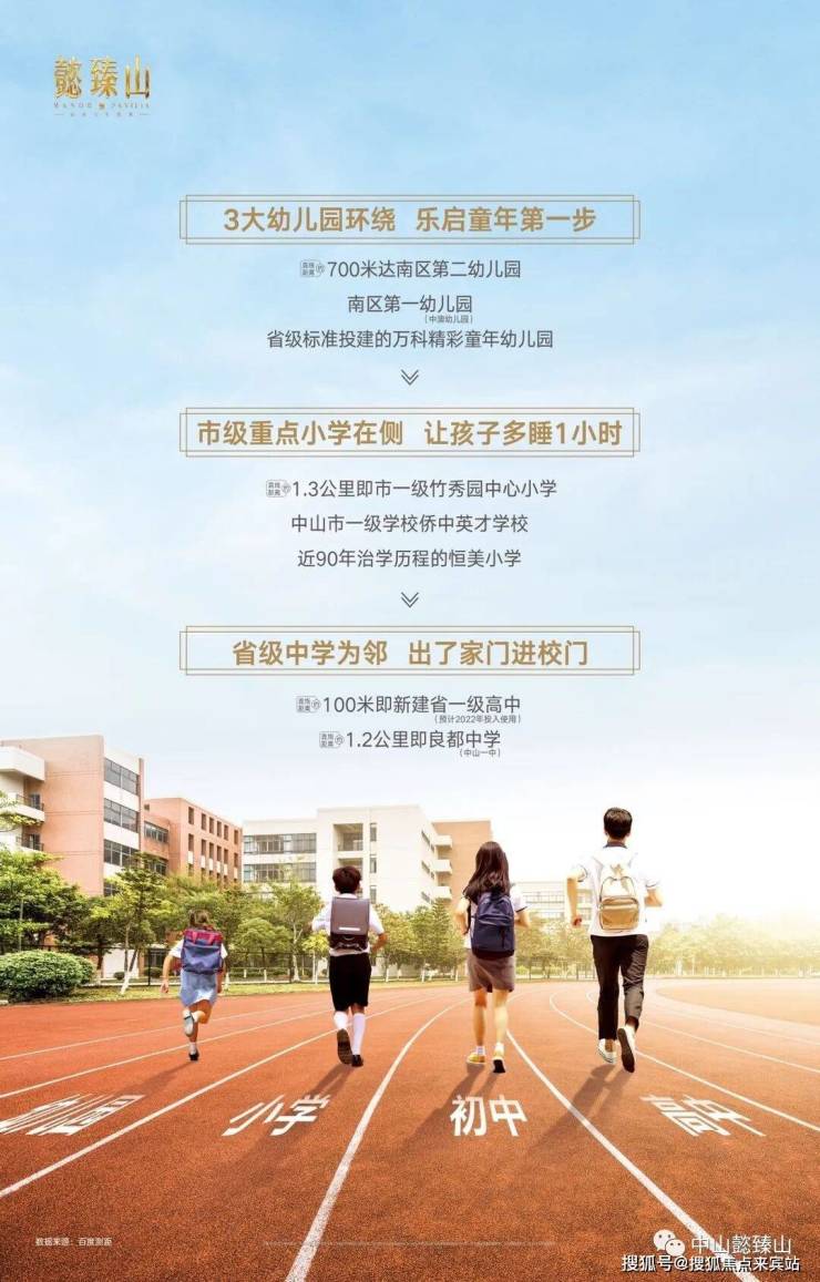 教育上,懿臻山与8大全龄学府为邻,约1公里范围内覆盖幼儿园至高中。出门约100米距离便是新建的省一级高中,总投入5.7亿元,提供4050个学位,预计将于2022年建成投入使用;中山良都中学(一中)、市一级竹秀园小学、侨中英才学校、精彩童年幼儿园、南区第二幼儿园等萦绕在侧,以浓郁的书香氛围,润泽孩子的成长之路,铺就锦绣未来。