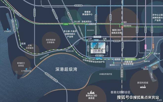 【立体交通 海陆畅达】·双地铁线:7号线双地铁口优势;22号线双地铁上沙交汇站(规划中),1站直达香蜜湖新金融中心与河套深港创新合作区。·超级口岸:皇岗口岸深度改造,深港唯一24小时陆路通关口岸,3城轨+2地铁,迅捷连通深港河套两地。·联港通沪:沪深高速磁悬浮规划,约2.5h通达沪深,链接“上广深港”南中国超级都会群。·城际轨道:全面覆盖广深科技创新走廊的穗莞深城际铁路,贯通大湾区重要科技核芯;深广中轴城际铁路,直连广深城市中心;香港北环支线,再添深港连通新轨道,便利畅达尖沙咀。