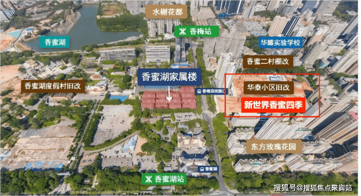 新世界香蜜四季家园位于福田区的景田板块,香梅路与新闻路交汇处,虽然不能算是传统意义上的香蜜湖豪宅区,但是地理位置也还算优质,与香密湖仅一路之隔。