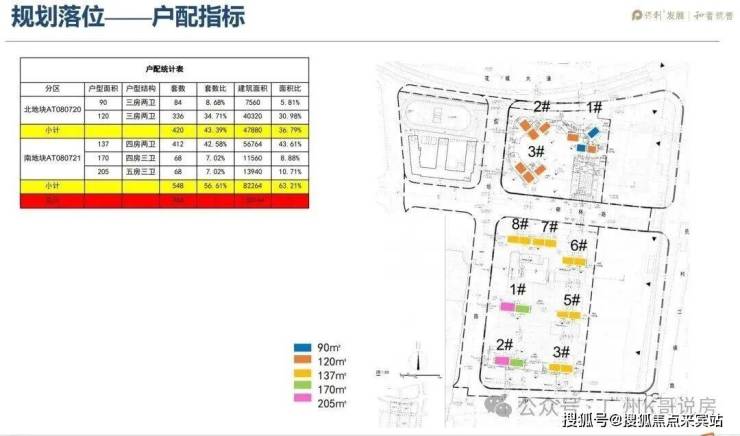 保利天曜分为南北地块开发,其中南地块是板楼设计,共有8栋楼,北地块是塔楼设计,共有3栋楼。