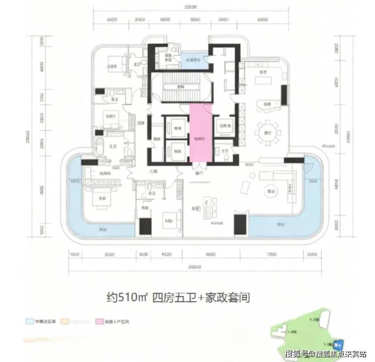 510㎡独占一层,可改造性非常强,目前做到4房5卫+保姆套间,十分豪奢,估计不少过亿单位。