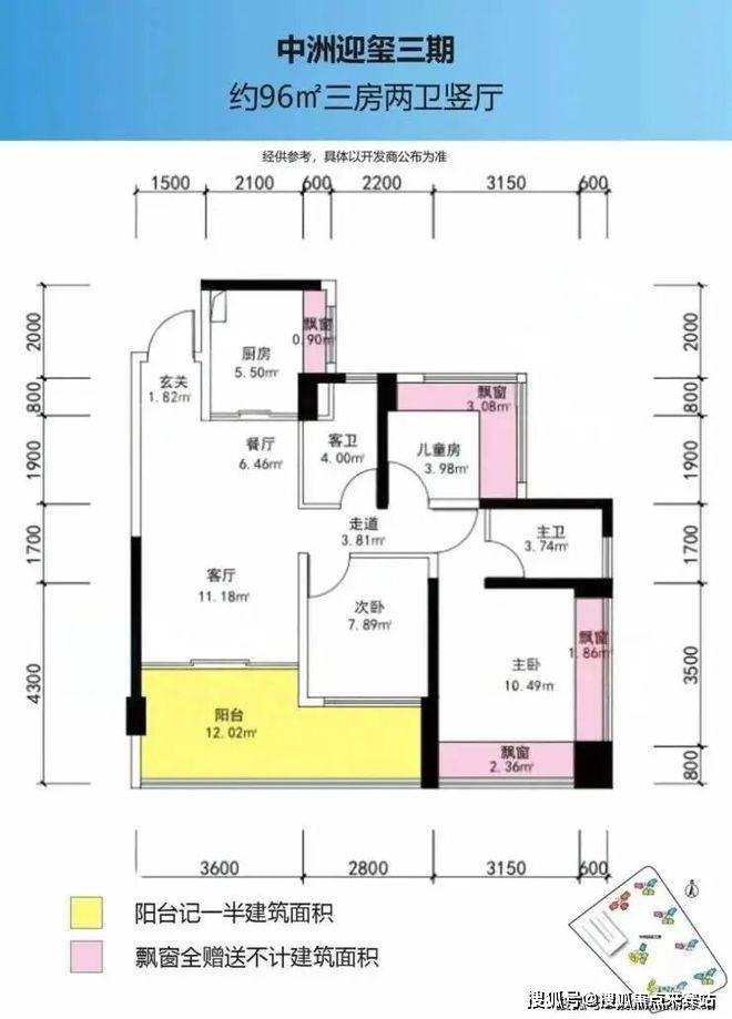 93-96㎡的3房2厅2卫,设计的是经典竖厅格局,进门入户玄关,客厅3.6米开间,LDKB一体化设计,三开间朝南,3个卧室分别做到了主卧14.71㎡/次卧7.89㎡/次卧7.06㎡(包含墙体飘窗),客厅连接次卧出6.4米长的大阳台,U型厨房,卫生间干湿分离,赠送面积高达14.21㎡,东南或正南朝向。