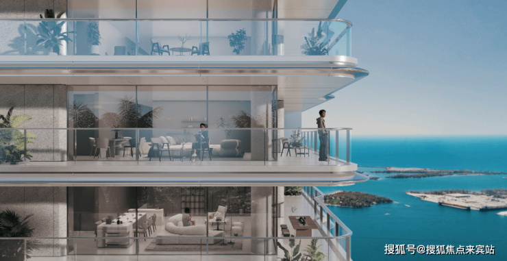 基于地中海风情的项目定位,汲取海洋和天空的灵感,以海洋气质的曲面美学划定湾区天际线。