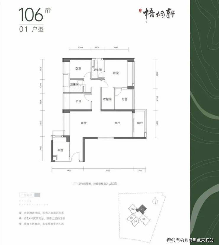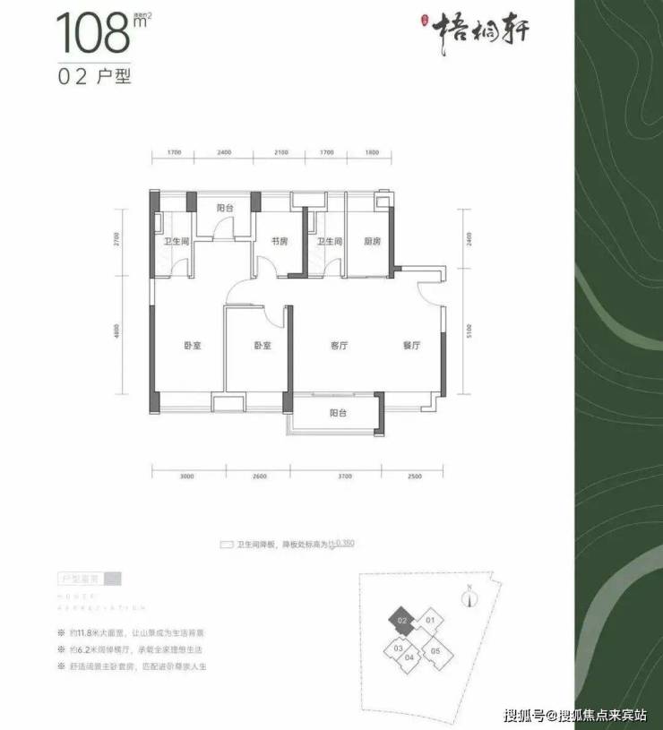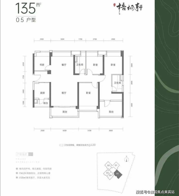 2)山景王炸户型:备案使用率约80%,全明空间通风采光俱佳,阔绰阳台,奢享梧桐阔绰风光