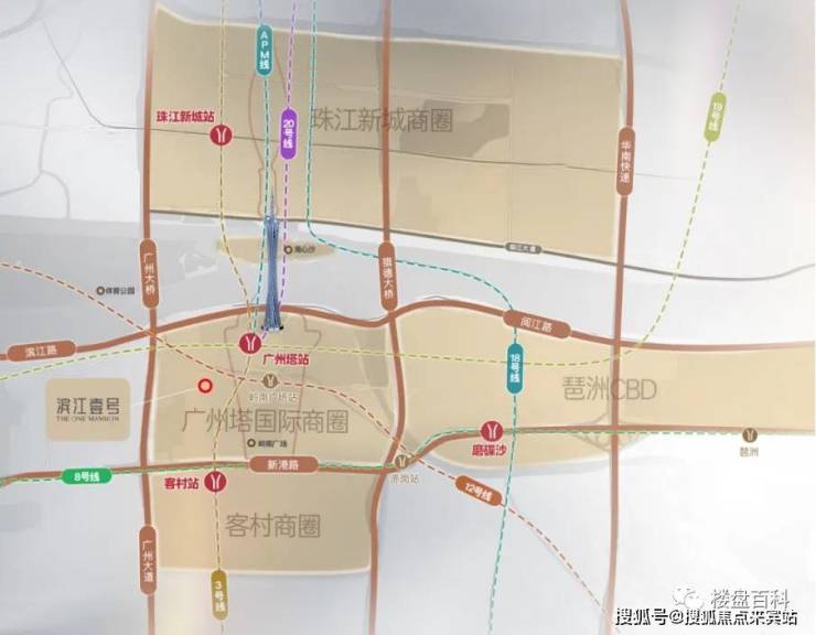 地铁——约300米即达地铁3/8号线【客村】站、约900米APM线【广州塔】站、2站珠江新城/琶洲;在建12号线【岭南广场】站预计24年开通、贯连19/20号线(规划)。