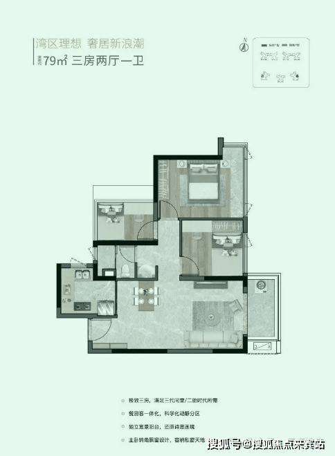 高得房率:来自深圳的爆款户型,79㎡3房1卫、89㎡3房2卫、105㎡4房2卫,全周期户型,90%以上超高得房率。