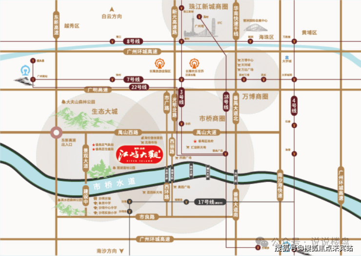这个新盘,就是国科众安·江屿大观。项目位于番禺市桥板块西环路西侧,隔壁就是将于今年首轮集中供地竞拍的沙头地块。