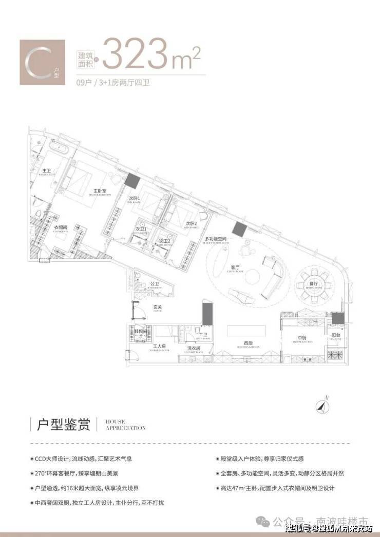 C户型:323㎡,单价4.6-5.4万/㎡,总价1509-1752万