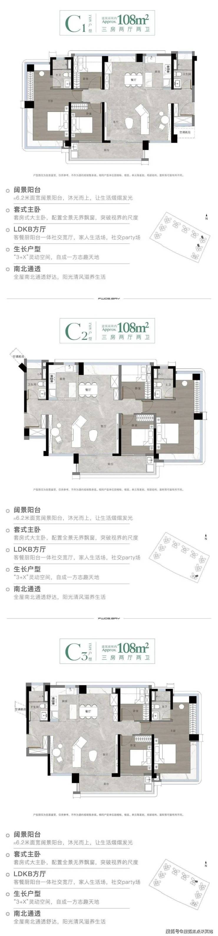 所有户型均为南向设计,使用率超100%,并配备大阳台或宽景阳台
