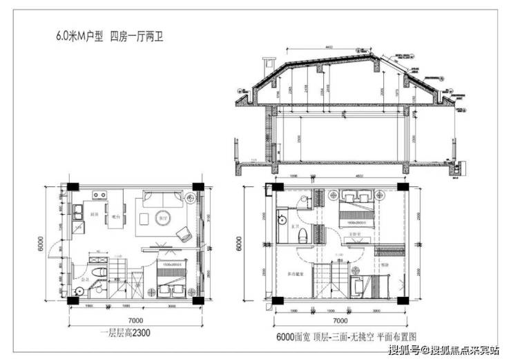 建面65和75,四层双折坡,实得81㎡—99㎡,2-3房2卫