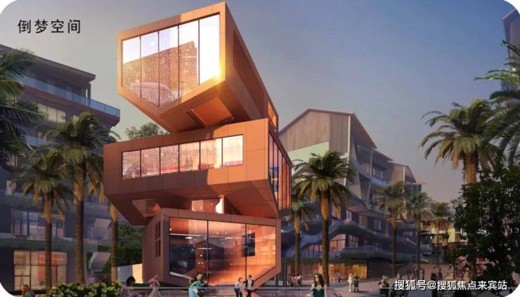 小镇通过积木岛、梦想城堡、云端、红色之恋、蓝色之恋、三位树屋、水下隐室、倒梦空间八大奇异建筑,汇聚顶尖品牌,打造科技馆、儿童乐园、婚恋主题馆、心灵修养馆等多元业态于一体的商业美学空间,是集网红打卡与商业场景并存的心地标。