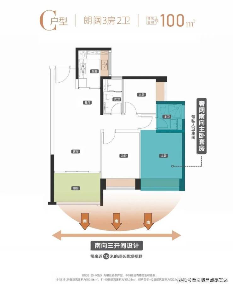 三卧朝南、主卧套房