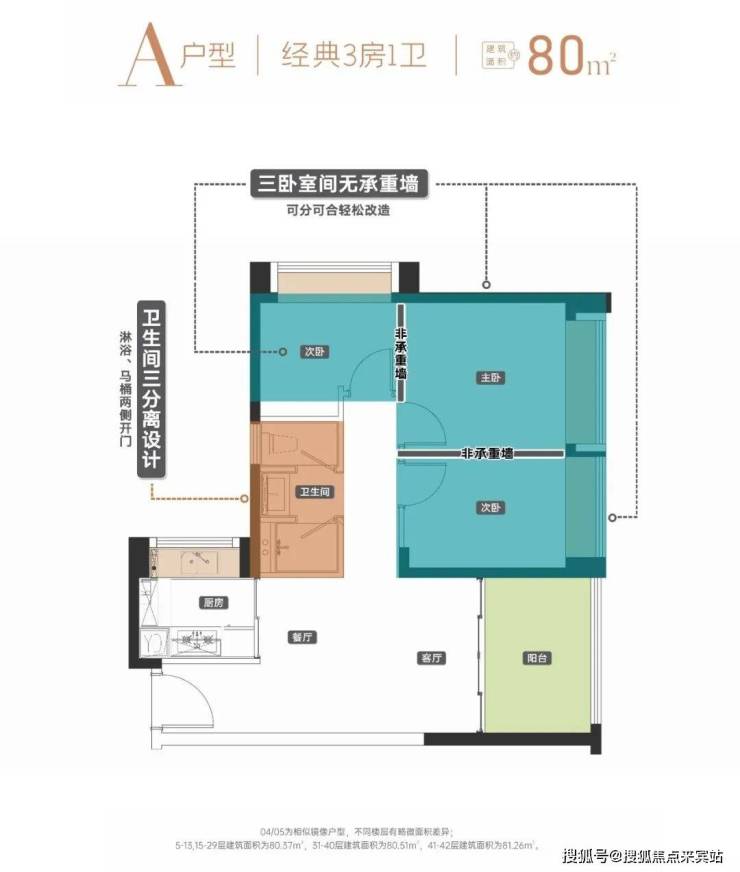 建面约80㎡经典3房1卫