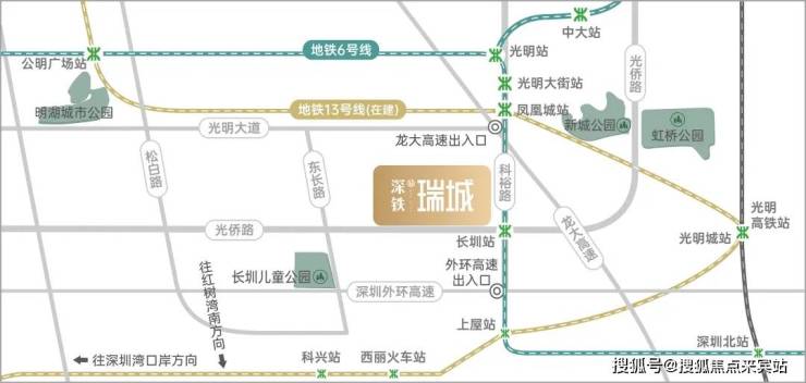 而深铁瑞城紧邻地铁6号线长圳站,若13号线(在建中)开通后,可1站换乘13号线(在建),6站到南山,9站到南山科技园北,高效联通南山留仙洞、科技园及后海深圳湾等地,大大方便了在这些区域上班的“光明人”!
