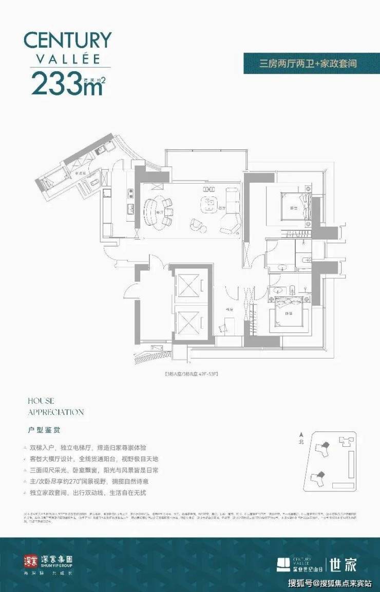 深业世纪山谷·世家位于深圳华侨城,坐拥山、河、湖、海、园等五重景观。乃深业集团融合40余年开发经验打造的S标首发之作。项目建面约233-1080㎡世家大宅,世界级大师参与设计,国际一线品牌精装,引进国际金钥匙联盟服务标准。采用Y型建筑结构,尽享270°IMAX观景视野;约2400㎡主入口环岛花园等8重礼序,尊享归家礼遇;标准层8梯3户,双专梯入户,私享奢阔境遇;共9大引领级产品力,礼献深湾之巅传世之作。曾荣获CIHAF第二十五届中国住交会“寻找中国好房子 2024年度示范项目”等奖项