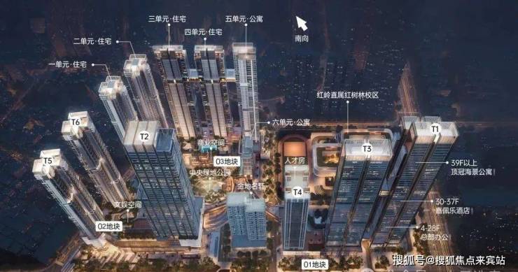 共分4个地块,01地块为T1栋260米高的写字楼,有高端酒店、金地总部等39层以上是450平以上的公寓。T3栋为商务公寓。另外两栋分别是人才房和幼儿园。