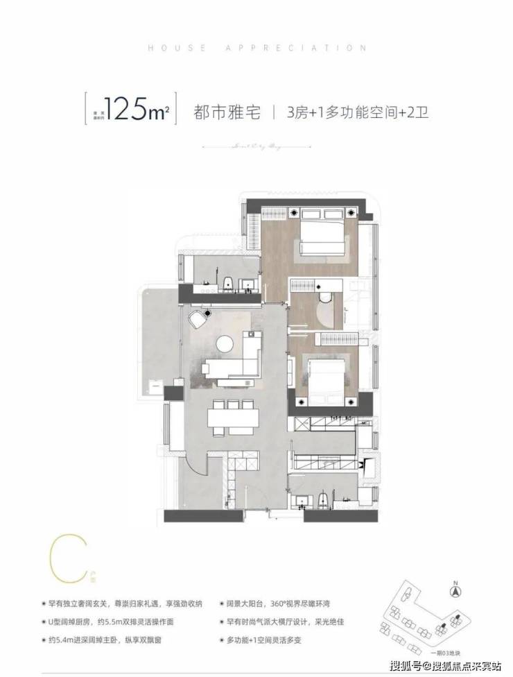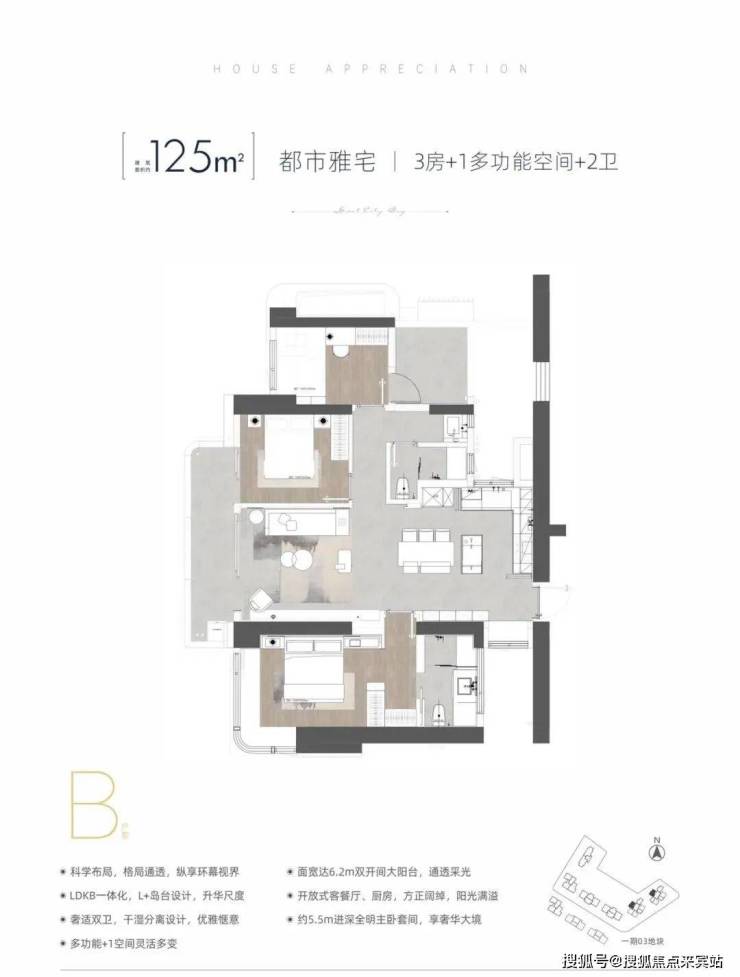 项目包含住宅、公寓、写字楼、酒店、商业、教育、公园等多种业态。目前在售的是一期的03地块由4栋住宅和2栋公寓组成,占地面积 21889.28㎡,建筑面积约16.8万㎡,容积率约8-9,车位比1:1.3;即将加推的二期是由2栋住宅+商业+办公组成。