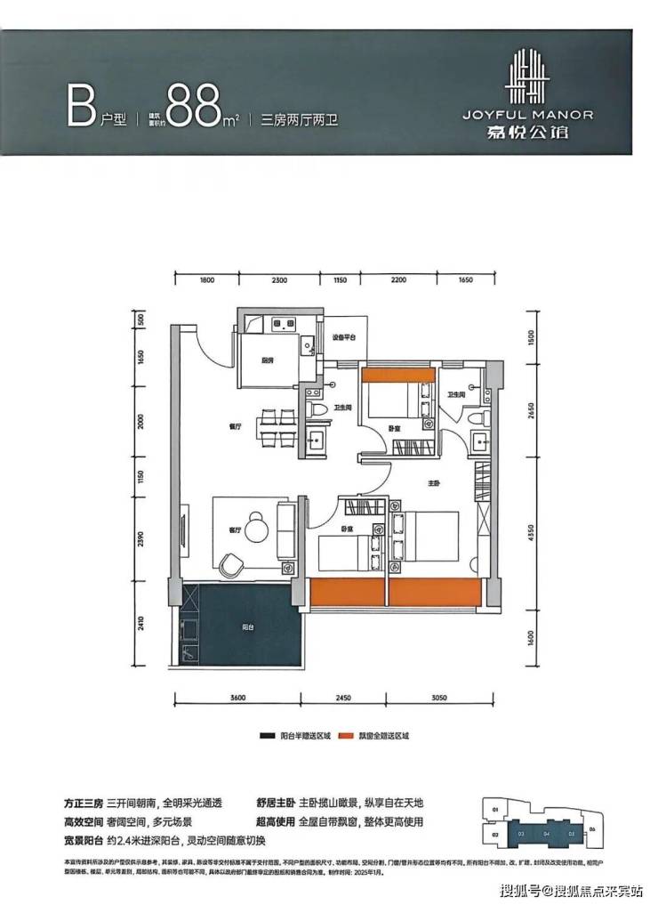 88m²的3房2厅2卫,折后总价349-470万/套,单价3.95-5.32万/m²。