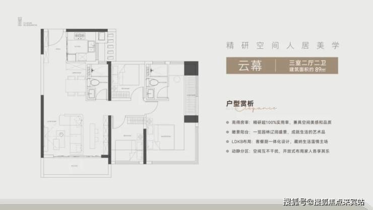 【云幕】建面约89 ㎡三房两厅两卫