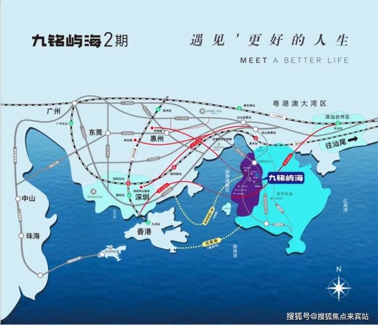 九铭屿海位于巽寮旅游度假区第一站,距离高速路口仅5分钟车程,项目享有"四高速、一机场、一高铁”的交通网络,另有规划中的两条海上航线,实现深莞惠1小时的交通网络,另外今年1月惠州市政府工作报告中明确提出,启动环稔平半岛高速公路建设,届时高速联通整个稔平半岛,未来度假将会更加方便快捷,实现深莞惠1小时的交通网络。
