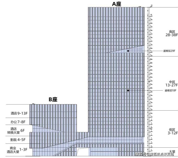 🔅项目楼栋:A栋写字楼(约8.4万㎡)、B栋商业+办公+酒店(约2万㎡)