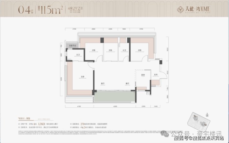 约115平(横厅,南北通透),四房两卫,总价约790万-900万;