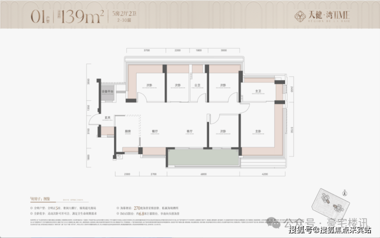 01户型,建面约139㎡,5房2厅2卫(下图)