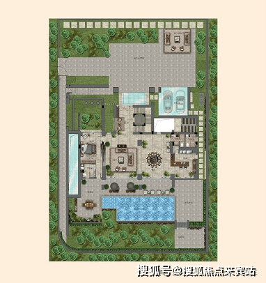 私家超大泳池,草坪活动区域,阶梯式园林分布合理规划园区