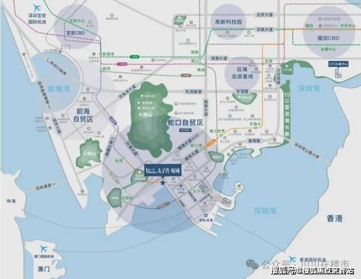 轨:地铁2号线(蛇口港站660米)、地铁5号线(赤湾站)、地铁12号线(太子湾站),轨道交通便利。