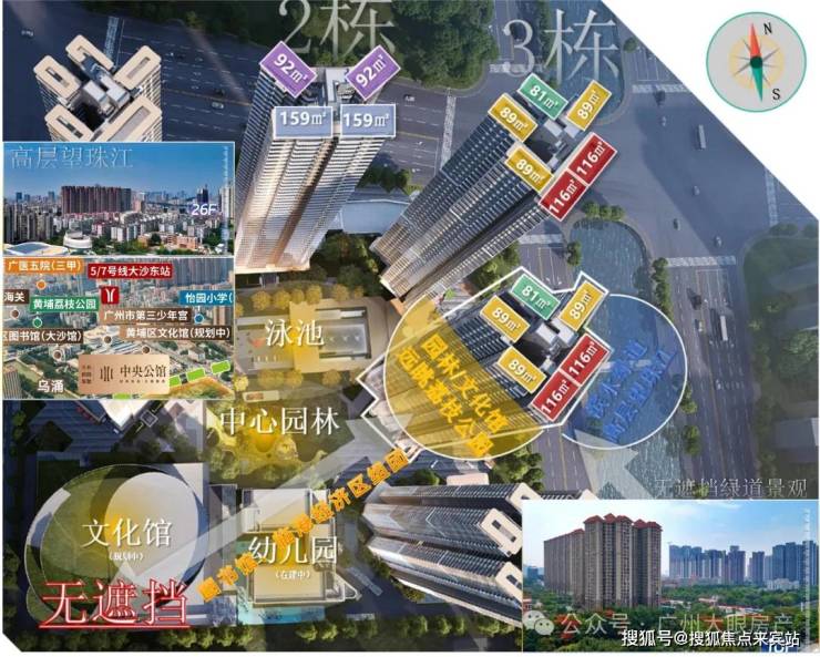 同时也是7号线的大沙东站,坐地铁3站黄埔科学城,7站番禺万博,约半小时内畅达广州各大CBD如珠江新城CBD、琶洲CBD、万博CBD