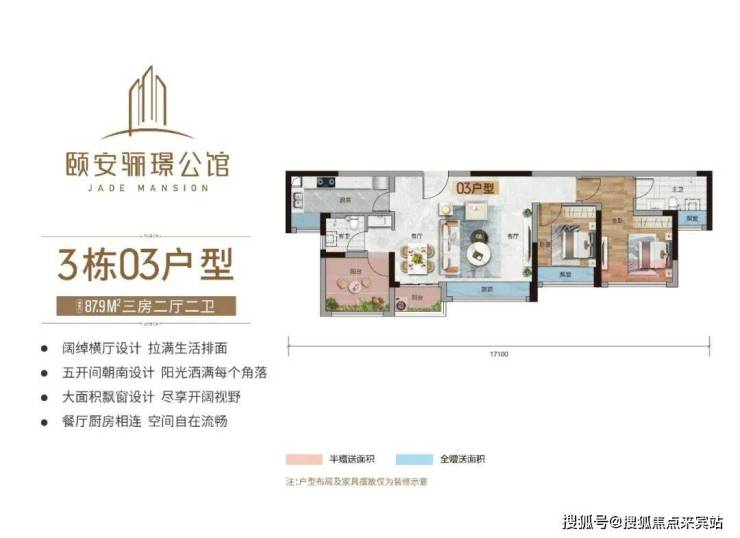 在颐安骊璟公馆,最小户型建筑面积约76㎡就能做到三房,是石岐总部为数不多的小面积三房,方正灵动,实用率高。