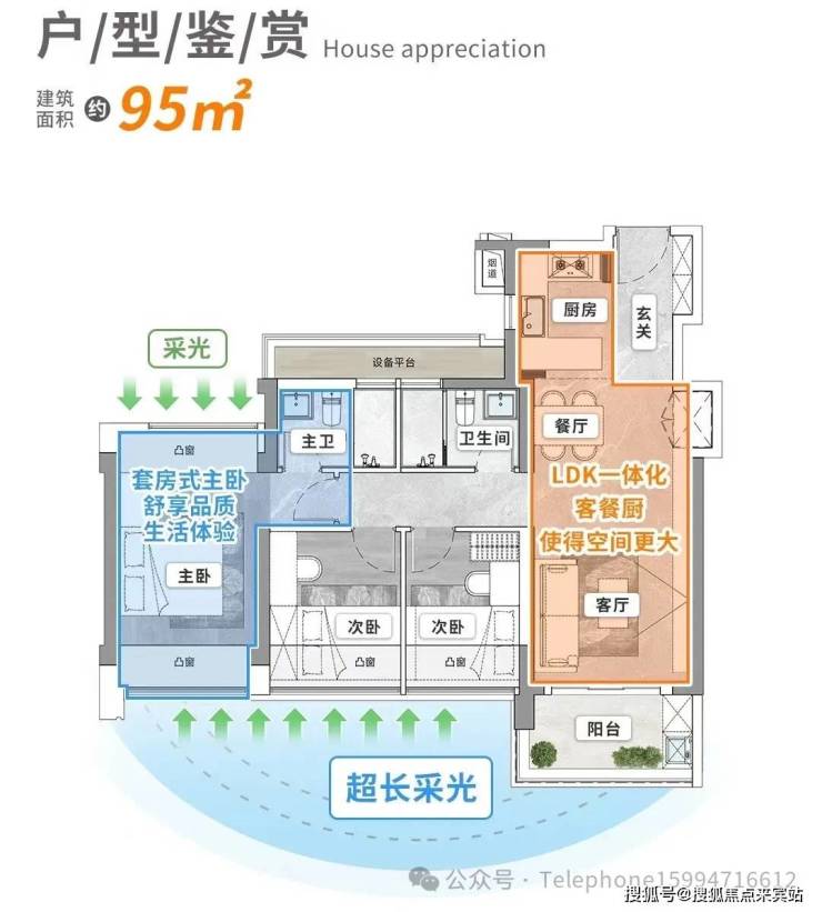 特点:片区唯一百平以下四房,南向超大设备平台可改收纳或卧室,主卫扩容3㎡