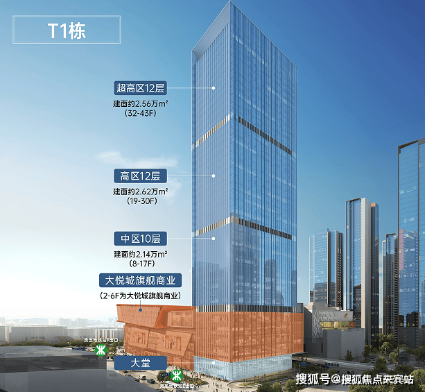 ● 作为深圳大悦城综合体压轴收官之作,T1栋写字楼集综合体价值大成,坐享城熟红利,作为地标商业体之上的难得的可售资产,以高标甲级写字楼,带来臻稀顶流资产。
