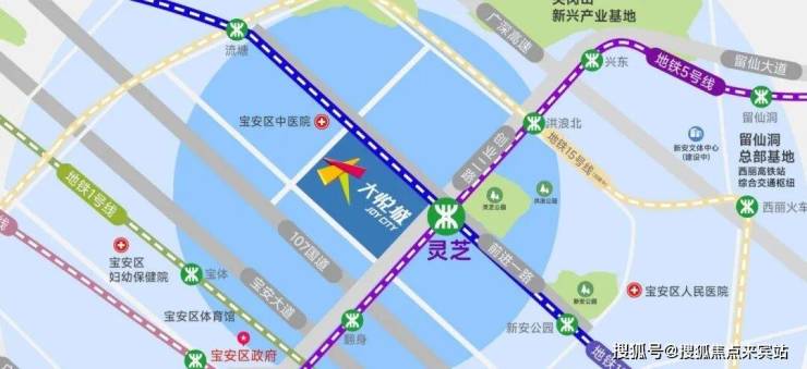 区位交通:粤港澳大湾区中轴线起点,双地铁(5/12 号线)灵芝站上盖,地下室直通地铁,速达宝中、前海、南山;周边主干道环绕,5 分钟达宝安机场、20 分钟达香港机场,海陆空交通便捷。