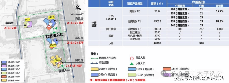 根据规划,「后海招商玺」更新单元用地面积为33111.3平方米,拆除用地面积为31710.4平方米,开发建设用地面积为15091.6平方米。规划总建筑面积98754平方米,其中住宅88449平方米,商业2100平方米,公共配套设施8205平方米。