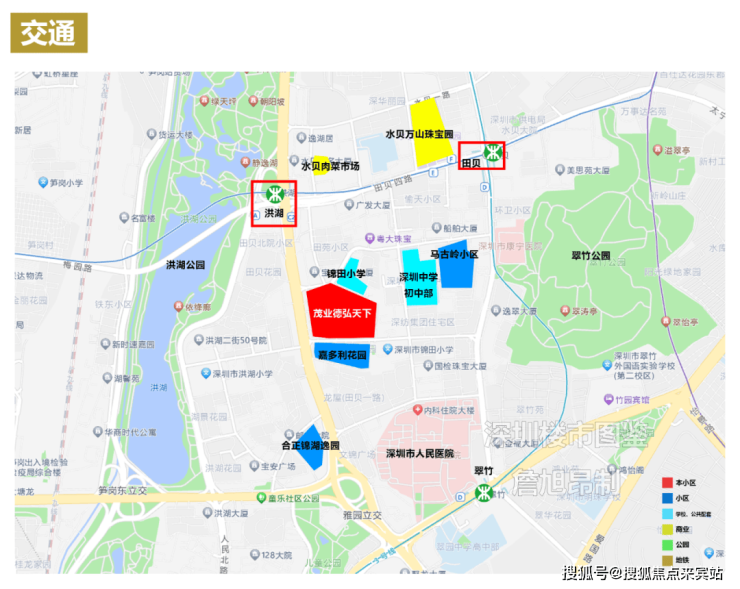 距离最近的休闲场所仅需890米,步行约13分钟便可到达翠竹公园,该项目五大公园环伺,咫尺城市绿肺,洪湖公园、人民公园、翠竹公园、儿童公园、围岭公园等超200万㎡公园绿景,于繁花之中静享繁华。