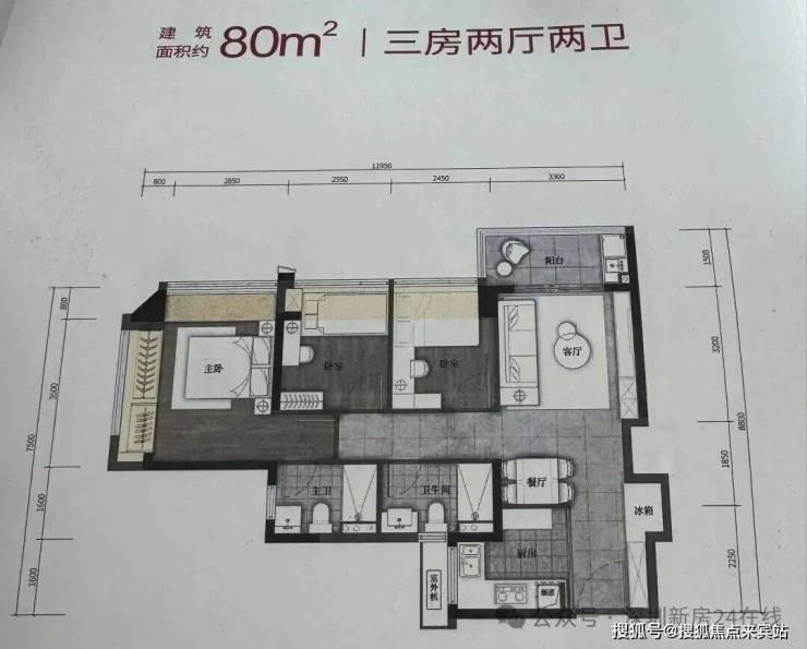 其中80㎡三房二卫新品户型图出炉,阅读下午获取