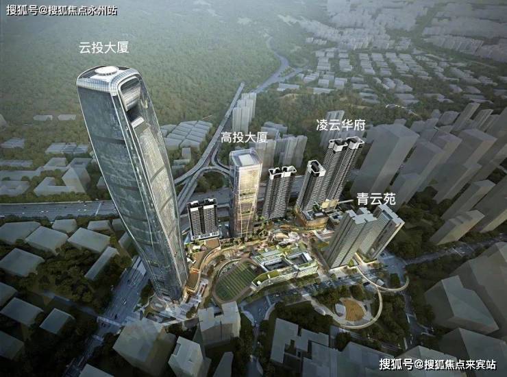 整个项目占地面积约4万㎡,规划总建面约63.4万㎡,整体由1栋81层的商务写字楼(云投大厦)、1栋48层的研发办公楼(高投大厦研发办公楼)、1栋36层的商务公寓、1栋60层的云端住宅(凌云华府),1栋保障性住房(青云苑),2栋返迁房,另配建有学校、幼儿园。