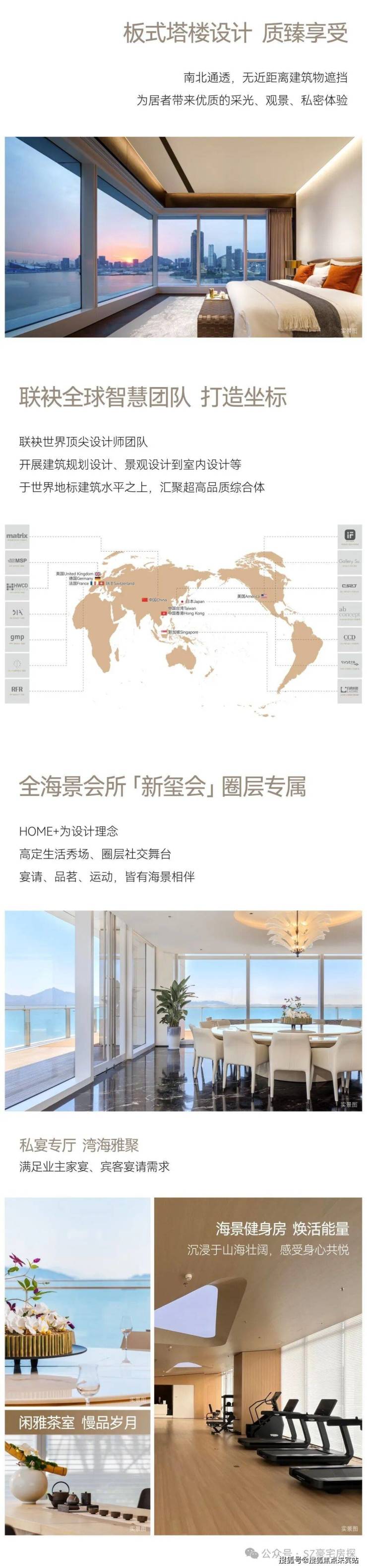 内部配套:配备高端私密会所、约 766 平方米的深圳首个悬空无边际海景泳池、首层城市花园、健身房、儿童游乐区以及 1800 平方米的海洋博物馆等设施。