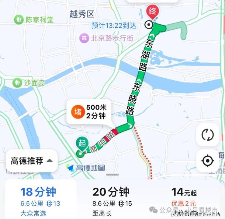 自驾去珠城:走昌岗中路转到东晓路,再转内环路至黄埔大道西,全程9.6公里,耗时18分钟左右。