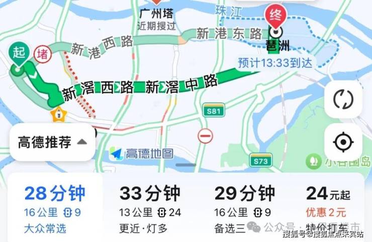 自驾去琶洲:可以走新滘路或者新港路,都是10多公里,耗时30分钟左右。
