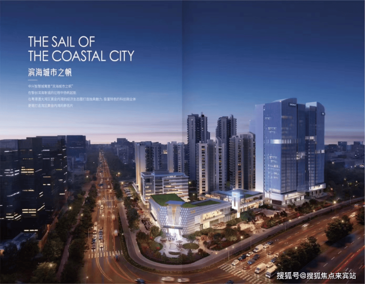 “中兴智慧城由懿港汇商业综合体和懿禧府住宅两部分组成。懿港汇商业综合体是马鞍岛签约的首个商业综合体,总建面约103511㎡,由2幢23层地标建筑、4幢2-8层的独栋商业以及商业步行街构成。”