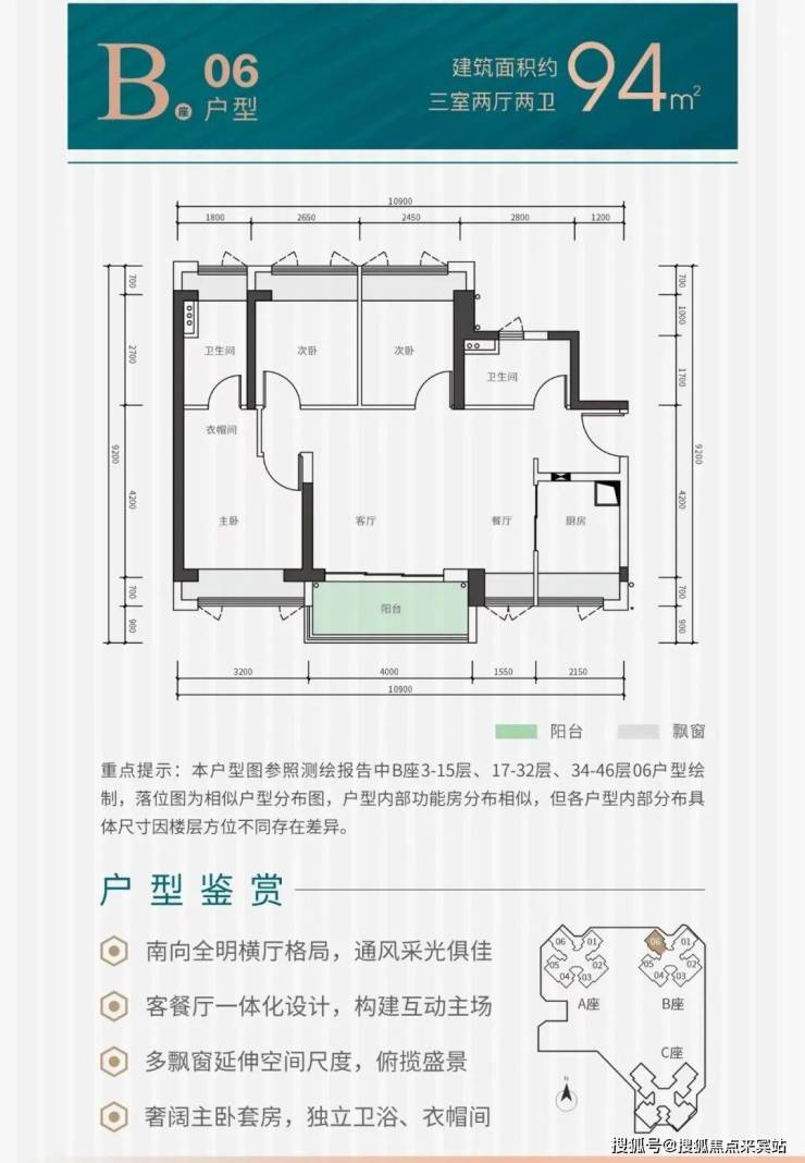 94㎡的3房2厅2卫,设计的是横厅南北通透格局,独门独户,进门入户玄关,客餐厅实测5.38米开间,LDKB一体化设计,3个卧室分别做到了主卧12.47㎡/次卧8.06㎡/次卧7.7㎡(实测面积,去掉墙体),U型厨房,卫生间干湿分离,得房率约76.2%(不含赠送),阳台主朝西南或东南向。套内面积71.62㎡+实测赠送面积10.15㎡,加上赠送得房率87.03%。