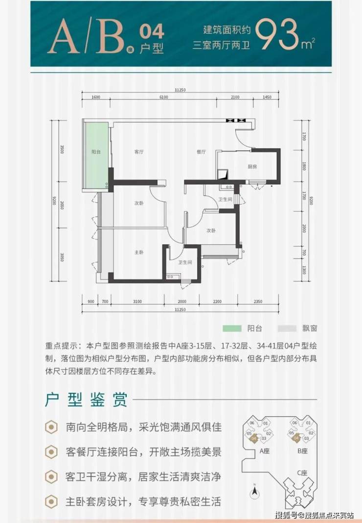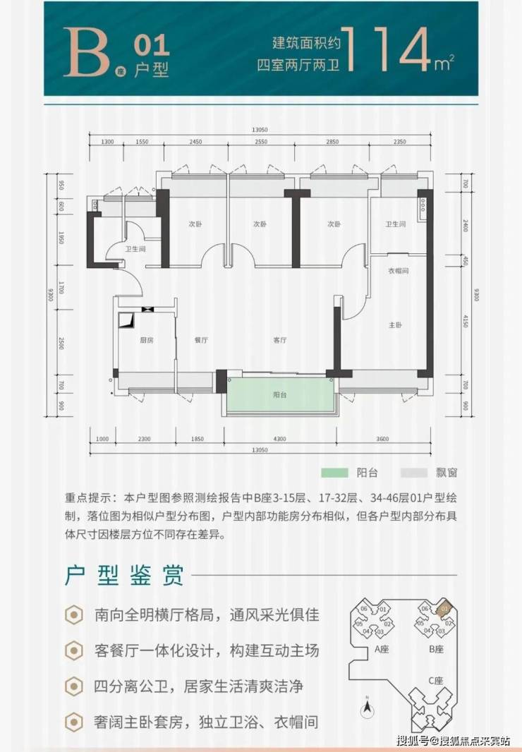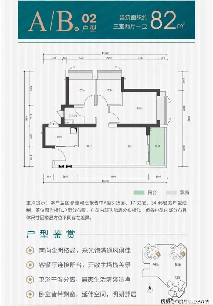 项目户型:建面约82-115㎡三至四房