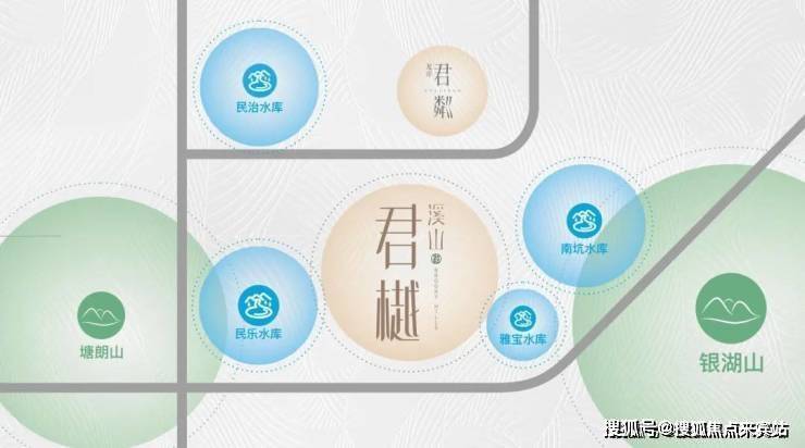 溪山君樾位处深圳“中心湖区“,是深圳最稠密的湖区所在地,项目周边环伺4大自然生态湖泊---民治水库、民乐水库、雅宝水库、南坑水库,居住在此,湖岸微澜风光无限,滋养健康涵养心境,孕育都会生活于家族贵雅之道;独享城市无价峰顶对晤湖景无垠的豁达高远。